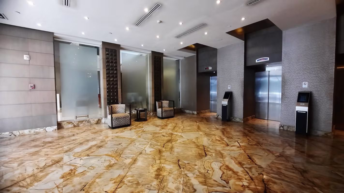 Edificio con seguridad 24/7 y ubicación estratégica cerca de bancos, comercios y servicios.