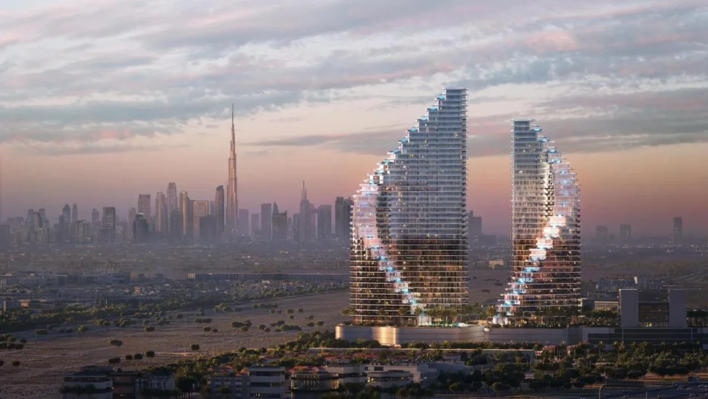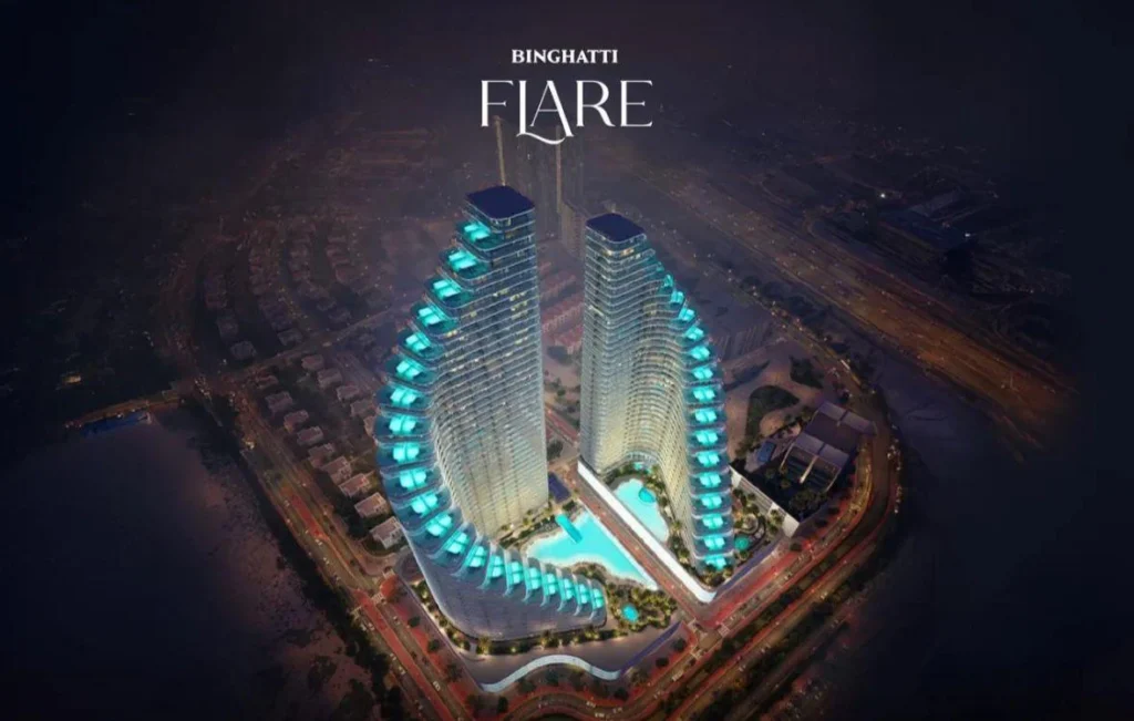 Binghatti Flare es un sofisticado complejo residencial de torres gemelas desarrollado por Binghatti Group, ubicado en el corazón de Jumeirah Village Triangle (JVT), Dubái. Este proyecto en preventa y de propiedad absoluta ofrece estudios y apartamentos de 1 dormitorio dentro de una comunidad cerrada y rodeada de áreas verdes. Su diseño destaca por una fachada simétrica de gran impacto visual y acabados de alta calidad, con interiores que aprovechan al máximo la luz natural gracias a ventanales de piso a techo, fusionando modernidad con practicidad en cada espacio.